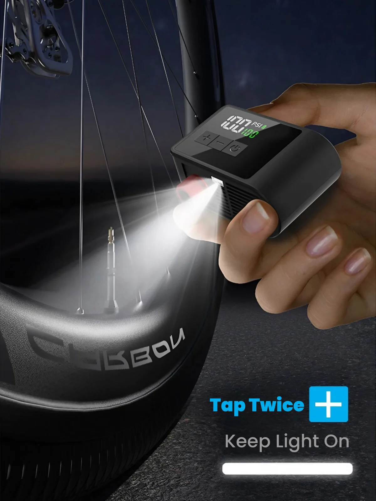 Built-in LED night light illuminates your valve and surroundings, making night-time inflation effortless. A simple double-tap turns it on, so you can keep riding no matter when or where.