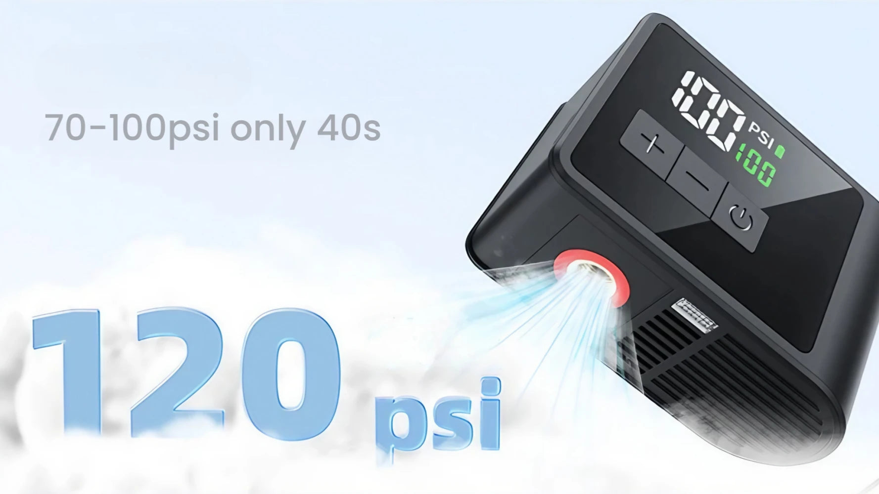 Pocket-Sized Power – Delivers up to 120 PSI, inflating a 700×23C tire (55–80 PSI) in just 30 seconds.